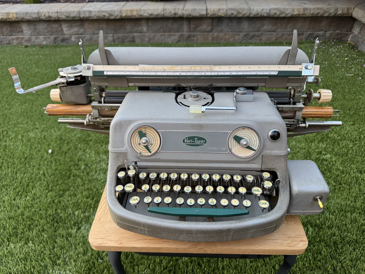 I have accumulated a few Varitypers 1 over the years. For a nice introduction to the Varityper in general, see Richard Polt’s Varityper page.